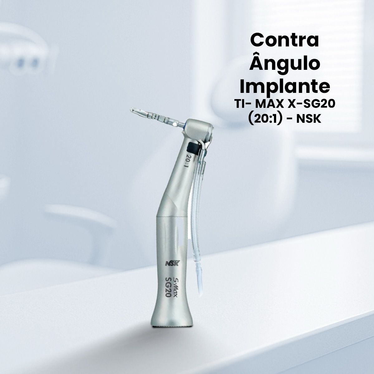 O Contra Ângulo para Implante 20:1 S-Max SG20 da NSK é uma ferramenta de precisão projetada para procedimentos de implantodontia. Com uma redução de 20:1, este contra-ângulo oferece controle excepcional e torque elevado, permitindo uma colocação de implantes segura e eficiente. Fabricado em aço inoxidável e equipado com irrigação interna e externa, garante uma refrigeração adequada durante o uso.