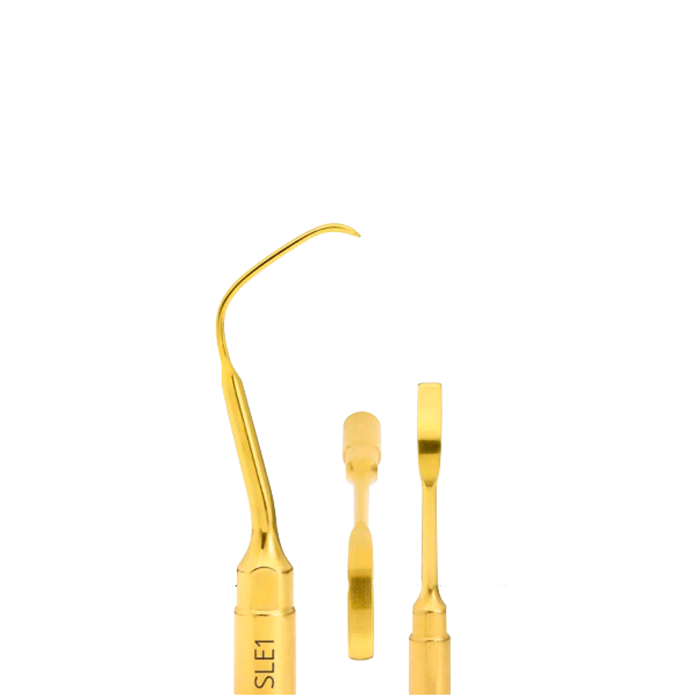 A ponta cirúrgica Mectron SLE1 é utilizado para fazer a elevação da membrana sinusal a partir do assoalho do seio maxilar. Além disso, sua extremidade é afiada para cortar as fibras de Sharpey com mais segurança para o paciente.